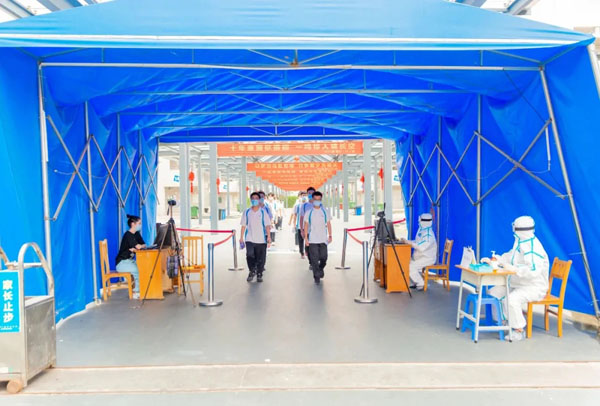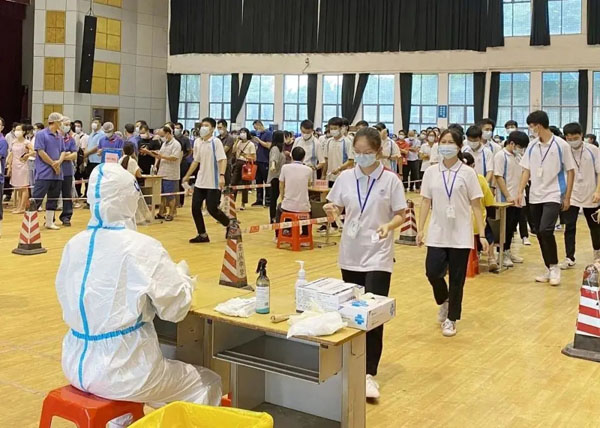 护航高考,他们在行动。5月31日及6月3日,广州医科大学附属顺德医院(乐从医院)派出经验丰富的医护人员,为乐从中学高三考生及教职工高效有序地完成核酸采样工作。