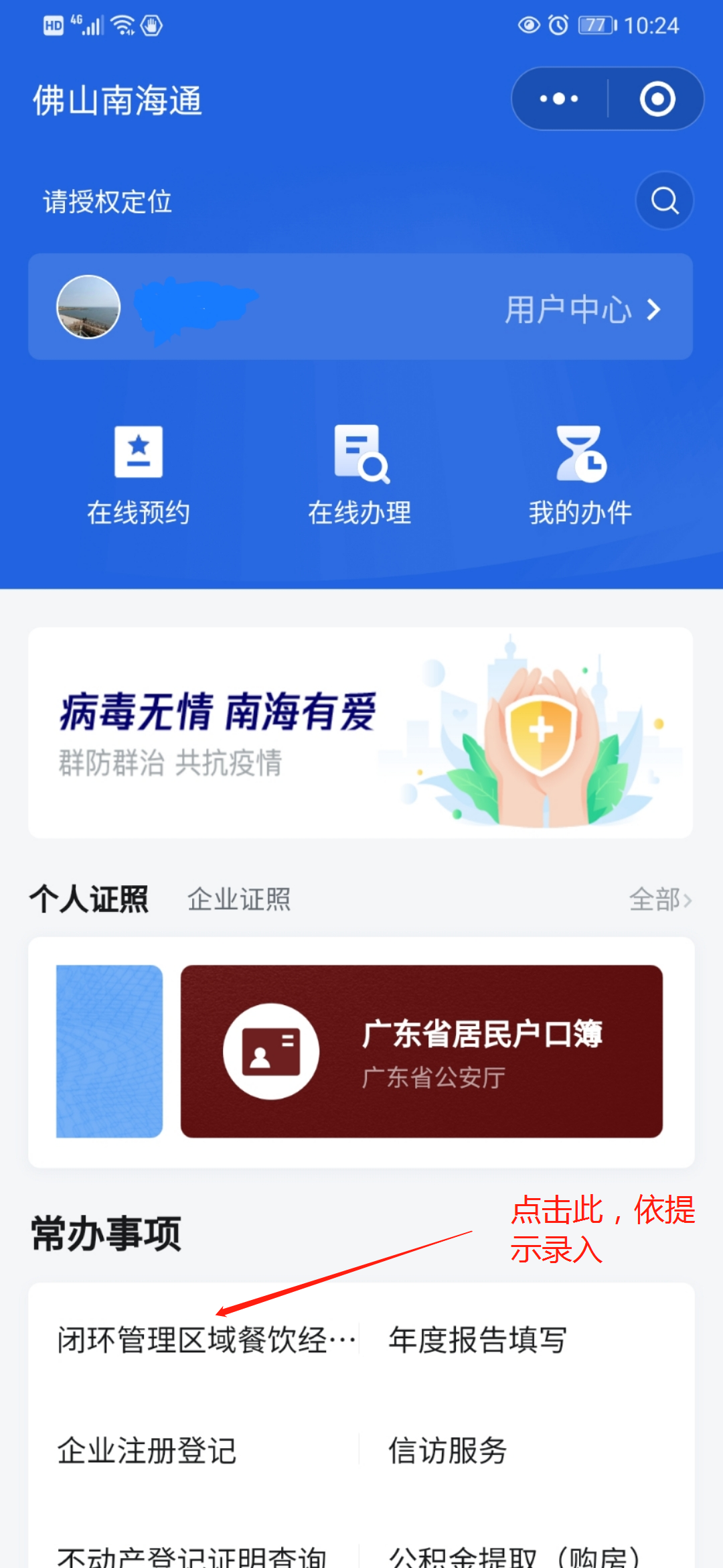 扫描二维码后进入微信小程序“佛山南海通”;