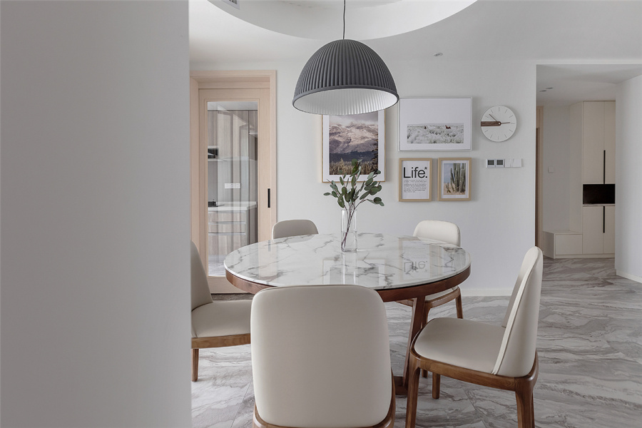整个客厅没有独立的吊灯设置,让简约之美更加凸显。将冰箱嵌入柜体不仅为有限的厨房腾出更多宝贵空间,也增添了更多的现代感,嵌入柜的设置也将为业主提供更多的储物空间。...[阅读全文]