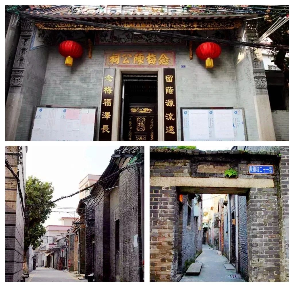 陈氏宗祠、念梅陈公祠、从吾陈公祠、慕源陈公祠、乐吾陈公祠、敬樵陈公祠、西泉陈公祠整齐排列,巍然矗立,一些清朝年间的建筑古迹亦挺立其间。