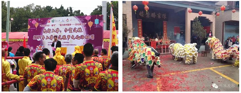 每逢正月十四艾胜节巡游活动,热闹非凡的醒狮锣鼓声回荡在祠堂梁柱之间,在外游子亦陆续凯旋共赴盛宴。历史悠久的古建筑群,成了上华村村民举行传统民俗活动的地标。