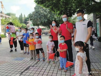 南海中学教职工的小孩也加入到送考行列。(受访学校供图)