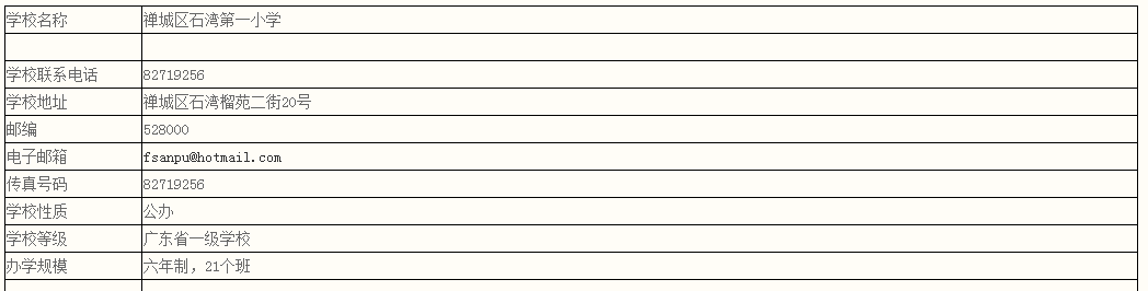 石湾第一小学建立于1945年,当时取名为石洲乡中心小学,位于石湾镇跃进三港5号,1949年后改名为石湾镇第一小学,1951年教会办的振华小学并入石湾镇一小,定为市、区、镇重点小学。1996年在石湾区、石湾镇两级政府和社会热心人士的关心和支持下,投资二千多万元将学校易地新建,现址在石湾镇宁静怡人的小雾岗公园旁,学校占地面积为16467.84平方米,现有教学班21个,学生988人,教职员工55人,1998年被评为广东省一级学校。学校校园环境优美,资源配件丰富,课室语教辅室的比为1:1.2,建有体育馆、200米标准塑胶跑道、高标准篮球场、游泳池、生物园以及功能室30间。师资力量雄厚,教师本科、大专学历达100%,佛山市名班主任1名;佛山市骨干教师1名;禅城区名校长1名;禅城区名教师1名;禅城区骨干教师2名。有20多人先后获得全国优秀教师、省优秀校长、南粤优秀教师、省优秀辅导员和市、区优秀教师等荣誉称号。学校本着“以学生发展为宗旨,与时俱进追求卓越”的精神,围绕“立人为本,和谐发展”这一办学理念,坚持走“文化建校,内涵强校、特色显校”之路。以“创特色品牌学校,育优质人才”的办学目标,着力打造陶艺、体育的办学特色,通过多年的不断探索与实践,学校的“陶艺”校本课程开发在省、市区已具有较大的影响;体育 “一学校本着“以学生发展为宗旨,与时俱进追求卓越”的精神,围绕“立人为本,和谐发展”这一办学理念,坚持走“文化建校,内涵强校、特色显校”之路。以“创特色品牌学校,育优质人才”的办学目标,着力打造陶艺、体育的办学特色,通过多年的不断探索与实践,学校的“陶艺”校本课程开发在省、市区已具有较大的影响;体育 “一操两舞”作为学校的特色持续十年,2010年被评为“广东省体育特色学校”。我校将力求创新管理机制,走“和谐治校、质量立校、科研兴校、特色强校”的发展之路,全面贯彻教育方针,全面提高教育质量,实现学校的科学发展,使学校成为学生享受成长快乐的理想乐园,成为教师实现专业发展的理想舞台。