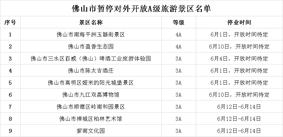 组团出市旅游活动全面暂停,佛山9家A级景区暂停开放!