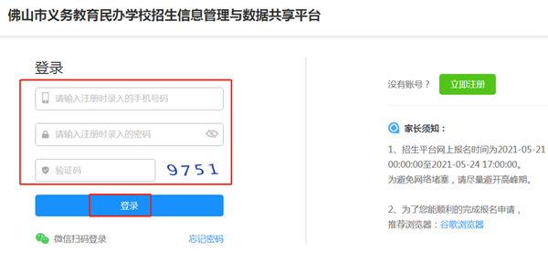 关注“佛山求学通”微信公众号,点击菜单栏【招生专栏】-【民办报名平台】即可进入。