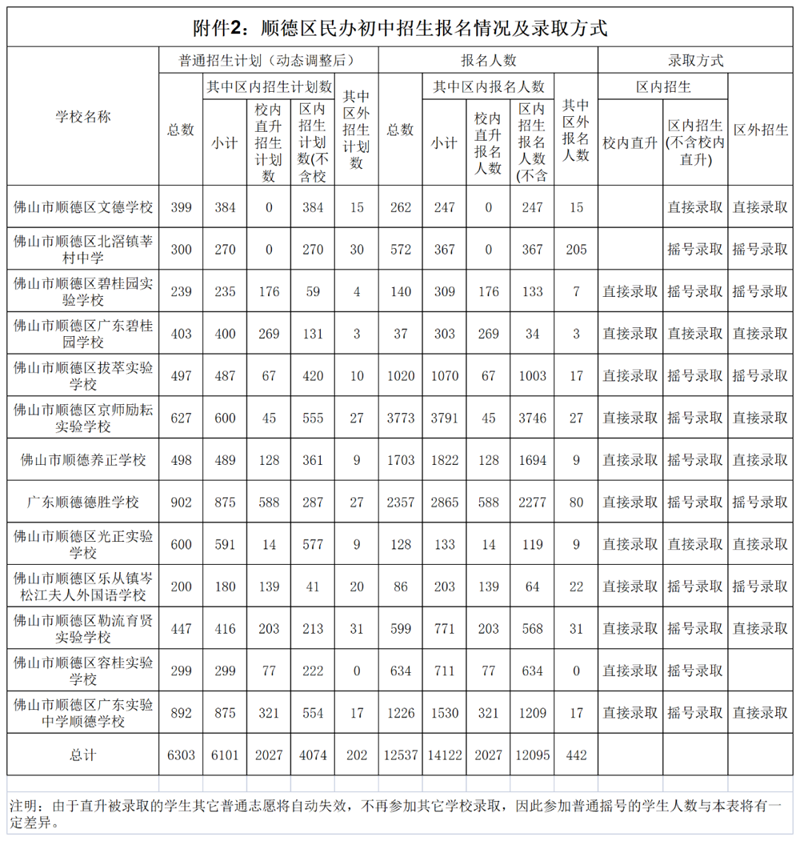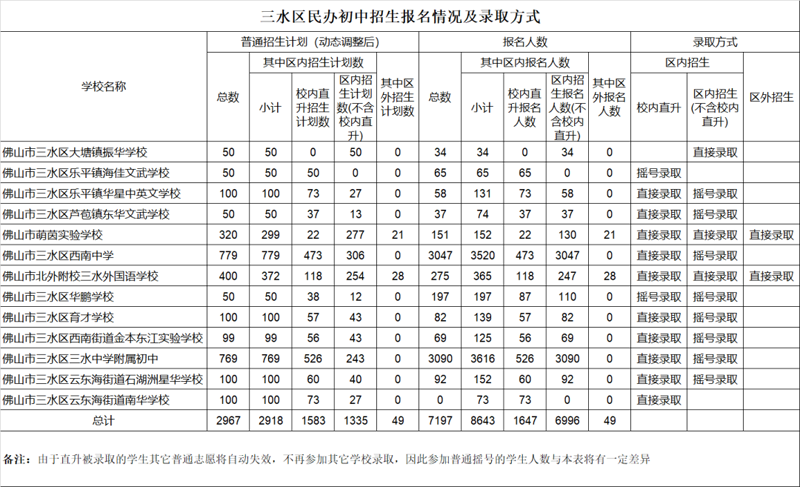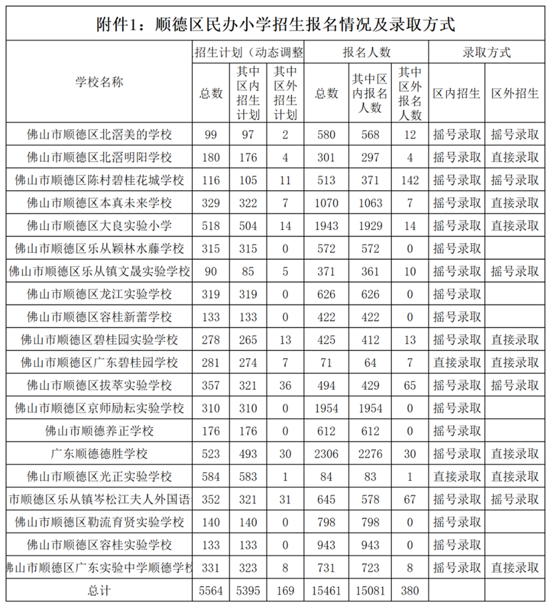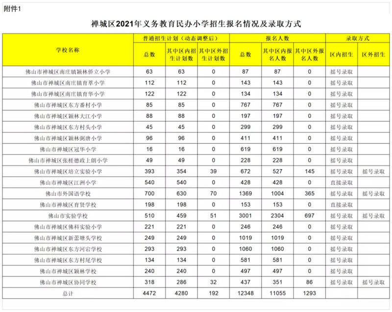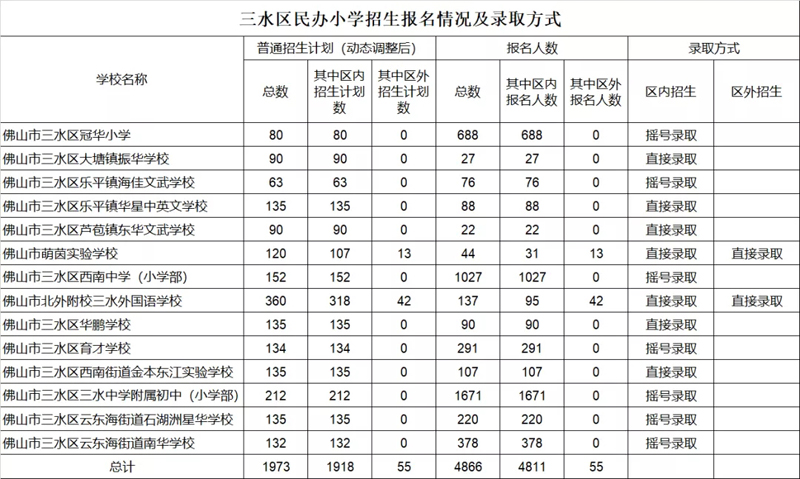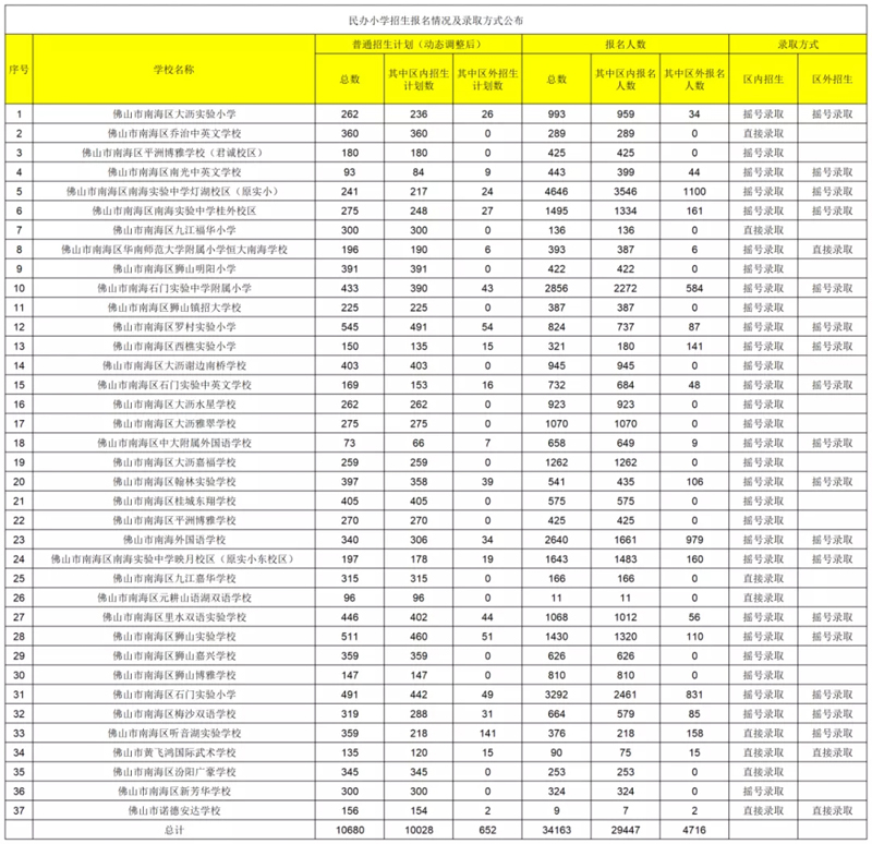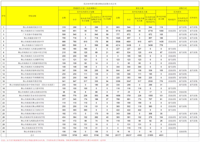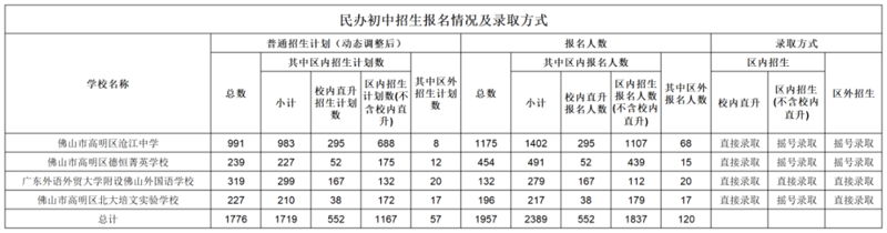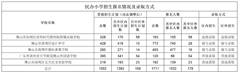 佛山市五区民办学校报名情况及录取方式公布