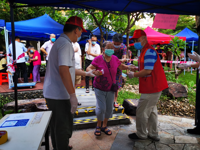“在前期准备的时候,小区有位80多岁的退休干部主动打电话来居委会,说自己腿脚不方便不能去现场做志愿工作,但建议我们开辟一条长者绿色通道,方便小区的老人。”范淑敏说,居委会立刻吸取建议,在入口处设了一条绿色通道,方便老人快速检测采样。