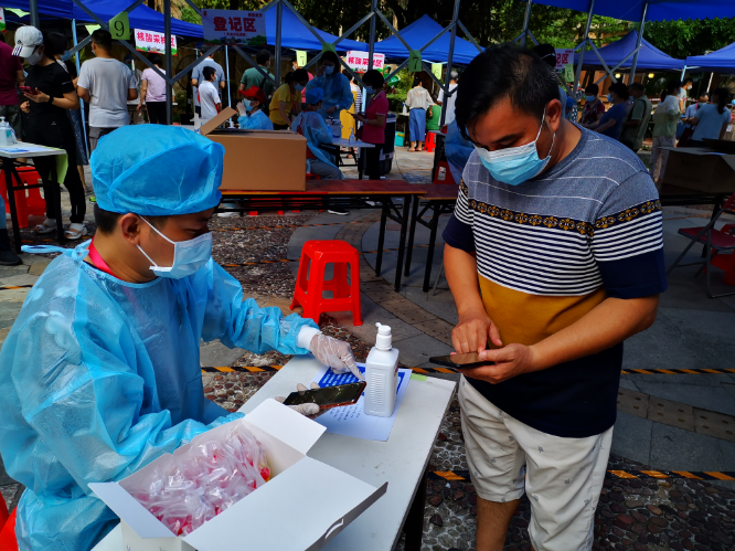 为保障广大市民的健康安全,禅城对重点场所、重点人群增加核酸检测次数。6月17日,绿茵鸣苑小区再次开展全员核酸检测工作。当天虽然是工作日,但居民积极有序参与,按时段按片区下楼检测,现场秩序井然,检测快速高效,不到三个小时便完成全员核酸检测采样。