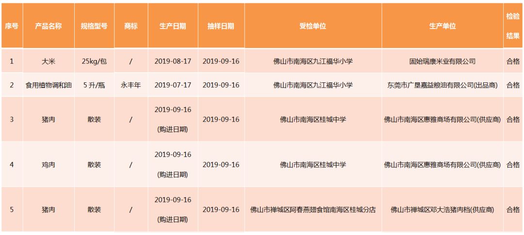 近日,佛山市市场监督管理局开展佛山市学校食堂及校园周边食品安全专项抽检,并公布了食品抽检结果。