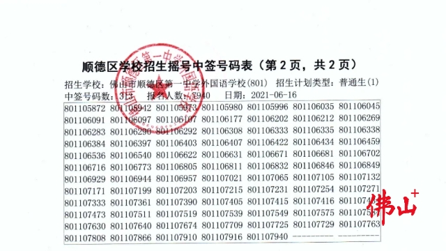 佛山市顺德一中外国语学校摇号结果出炉