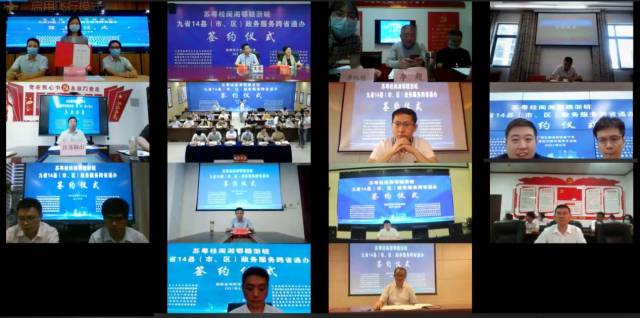 6月23日,南海区行政服务中心内举行了粤苏桂闽湘鄂赣浙皖9省政务服务跨省通办网上签约仪式。14个地区政务代表在线展示了成功签署的协议文书,标志着南海区与9省14地区政务服务跨省通办联盟正式建立。