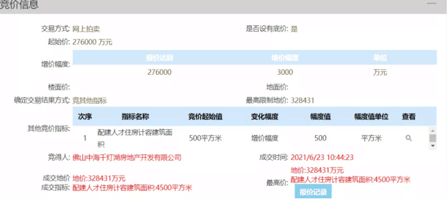 6月23日上午,中海以328431万+配建4500㎡人才房问鼎平洲靓地,成交楼面价22000元/㎡(最高限价)佛山前二,仅次于华润陈村地块。
