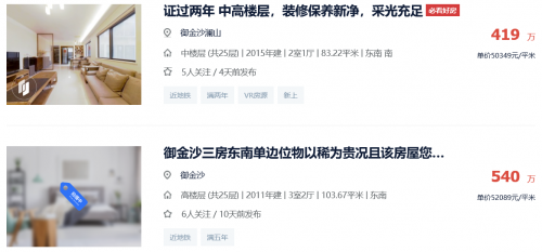 在华润以4.2万/㎡的高价摘地后,金沙洲的热门二手楼盘-御金沙,小区挂牌价一路上涨,根据贝壳网上发布的该小区最新二手房源信息,近期业主的放盘,挂牌价均已超5万+。