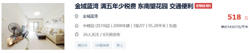 此外,作为金沙洲的门户楼盘-万科金域蓝湾,在华润摘地后,小区挂牌价也一路上涨,根据贝壳网发布的该小区最新二手房源信息,上周有业主放盘,挂牌价已超5.4万+。