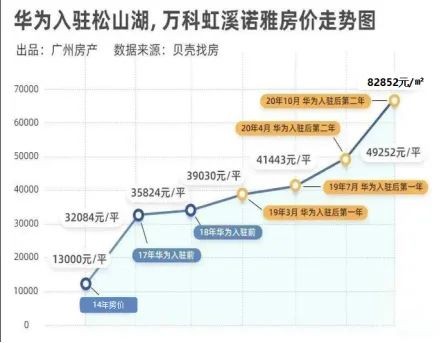 5年前,华为进驻东莞松山湖,如今板块二手已经突破8万/㎡,5年涨幅500%,创造了轰动楼市的“松山湖”奇迹。