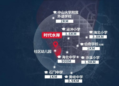 除了无可比拟的景观,时代水岸的生活设施也非常便利。4KM八大省市级名校,包括省一级的石门中学、黄岐中学,距时代水岸1公里的伯奇学校,预计2022年竣工,将新增3000个学位。