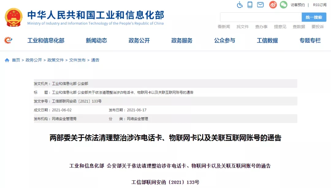 通告中明确,凡是实施非法办理、出租、出售、购买和囤积电话卡、物联网卡以及关联互联网账号的相关人员,自本通告发布之日起,应停止相关行为,并于2021年6月底前主动注销相关电话卡、物联网卡以及关联互联网账号。对通告发布后仍然进行上述非法行为的人员,将依法依规予以惩处。