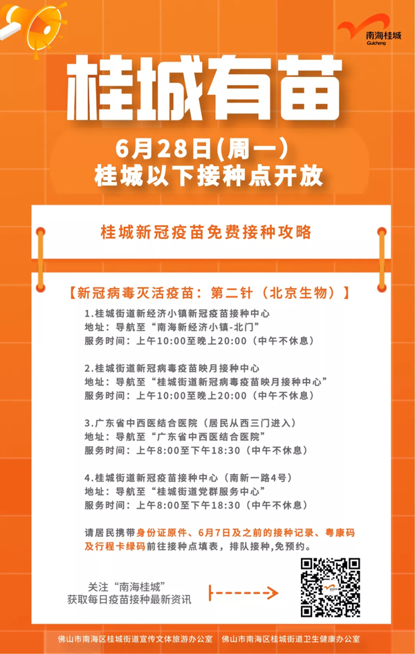 6月28日大沥镇接种时间安排:大沥接种中心、盐步社卫中心社卫中心8:00-20:00;黄岐东区管理处11:00-20:00。