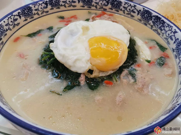 这道瘦肉枸杞汤浸绿线苗,想必三水的街坊比较少吃到。绿线苗看上去像是辣椒叶,但其实是一种野菜,口感比较滑。