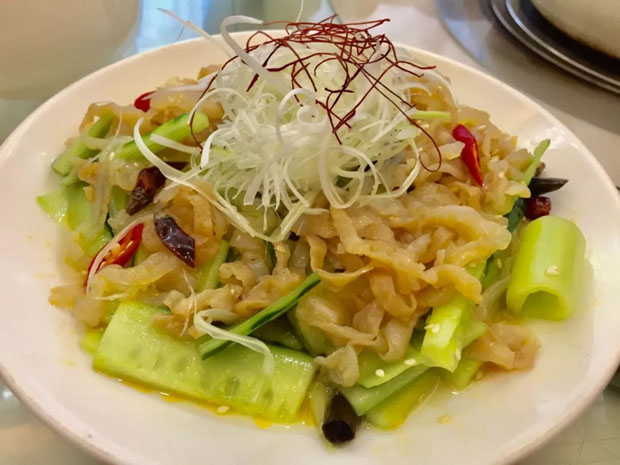清爽的青瓜,加上爽脆的海蜇,微辣的酱汁是精华。夏天吃上一口酸辣的凉菜,开胃又解腻!