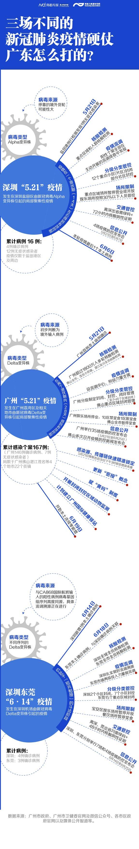 为什么说是三场不同的硬仗?国务院联防联控机制综合组广东工作组专家强调,虽然三起事件都发生在广东省、同样是新冠肺炎疫情,且时间上呈现出了紧密连接状态,但是有明显的不同。最突出的特征是3次疫情分别有着不同的传染来源,从新冠病毒Alpha变异株到Delta变异株,再到另一个不同序列的Delta变异株。从溯源进展来看,三次“战役”是不同境外输入事件引发的本土疫情。