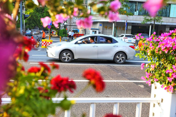 花团锦簇的季华路,给繁华的马路增添“芳华”。