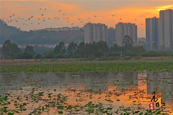 熙熙攘攘,热闹不已。百鸟齐飞,与水光山色自成一幅美好的画面,一番完美的视觉盛宴呈现在眼前~