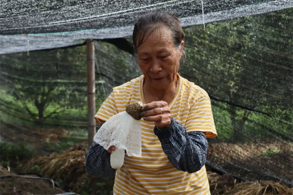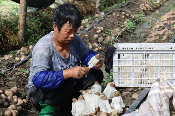 村民小心翼翼地处理新鲜采摘的竹荪。