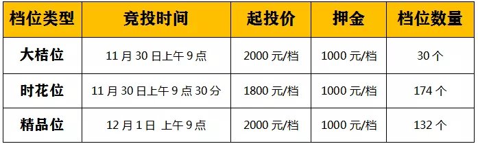 花市档位竞投时间:11月24日(本周日)上午9点