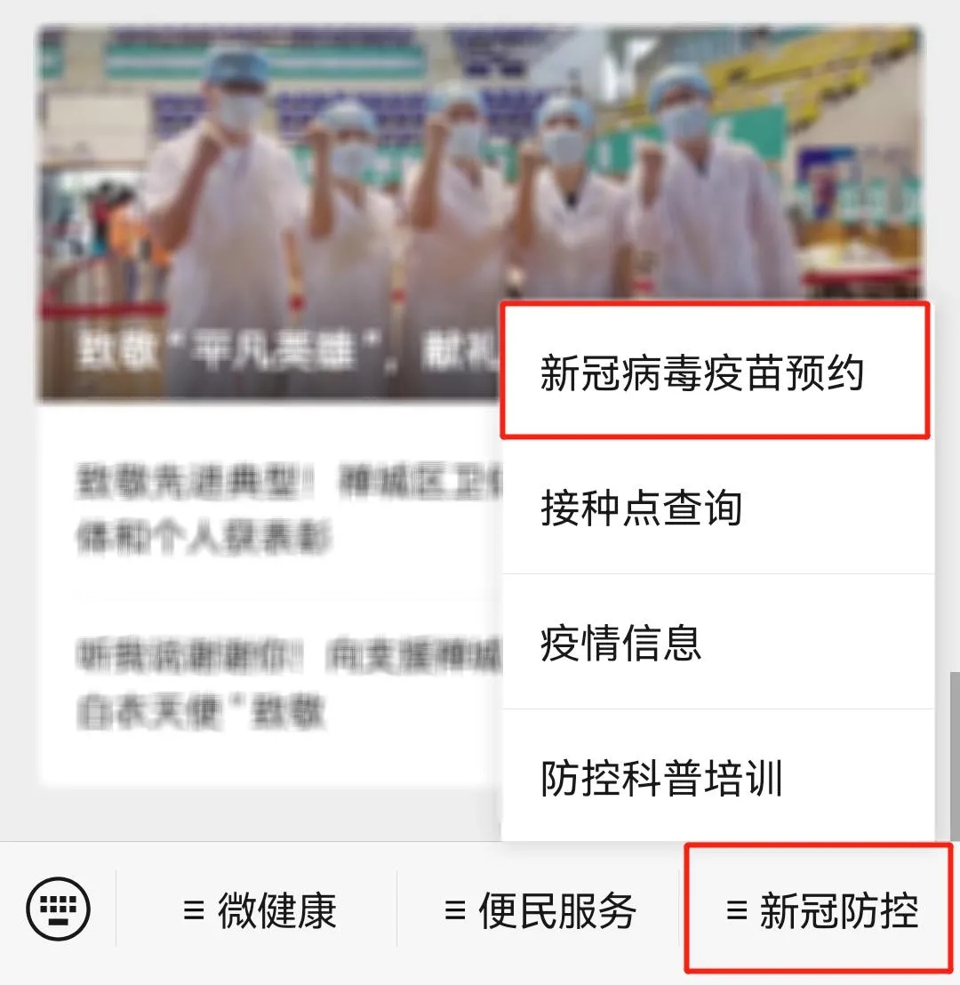 1.关注“健康禅城”,点击菜单栏【新冠防控】-【新冠病毒疫苗预约】