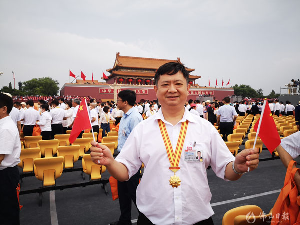 禅城区启智学校副校长马善波到北京天安门参加大会。