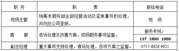 1、当您有任何伙食问题,您可随时打以上电话,我们将随时为您服务。