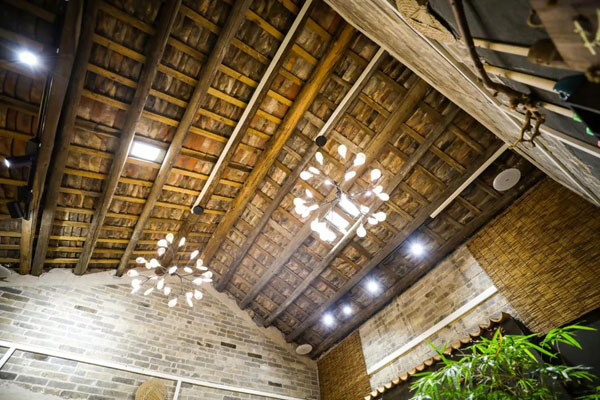 “传统瓦房建筑具有通风、采光等优势,瓦片层层叠叠地铺在屋顶坡面上,形成了利于空气流通的缝隙,使得整栋屋子冬暖夏凉。”改造过程中卢明洋充分利用古民居这一巧妙的设计,保留了屋顶的木梁以及天窗,轻松引进了自然光。除此之外,卢明洋还对破旧的木门进行重新利用,在打磨、抛光一道道工序下,旧木门以新桌子的身份获得了重生。