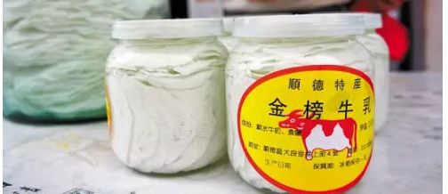 金榜牛乳与顺德“双皮奶”齐名,在顺德的小吃中各领风骚,他们都以水牛奶为原材料。金榜牛乳的产地就是大良金榜街。