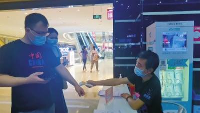 市民进入影城前要配合测温和出示粤康码。珠江时报记者/穆纪武摄