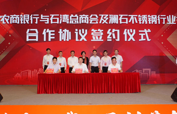 佛山农商银行与石湾总商会及不锈钢行业协会合作协议签约仪式。佛山日报/记者谭兼之摄
