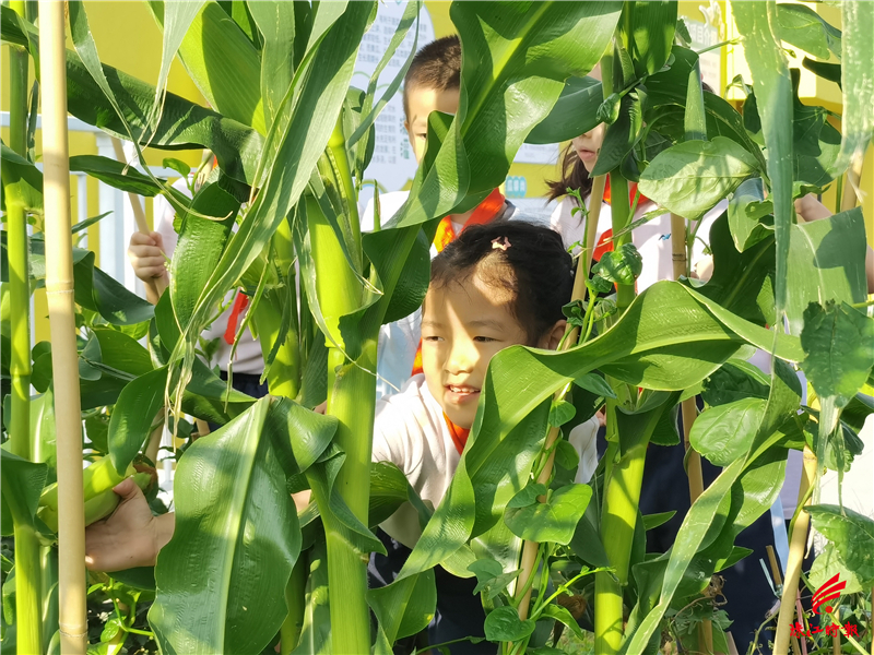 晨兴理荒秽,带月荷锄归。本学期即将结束,梅沙双语学校设在教学楼天台上的菜园迎来了收获季,孩子们兴高采烈地在菜园里采摘玉米,分享丰收的喜悦。据介绍,该校农耕种植课程以班级为单位,以小组为基点,从种植到分享,从生长到收获,学生分工合作,交流沟通,在活动中巩固和拓展学科知识,在实践中获得身心全方位发展,感受合作学习、体验式学习的魅力。