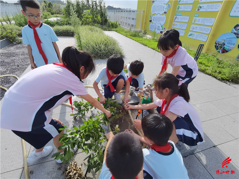 据介绍,为了让农耕种植课程更好的推行,梅沙双语学校在教学楼楼顶专门开辟的天台种植区,各班拥有独立的十余平方土地,用于种植各季蔬果。在学期初,每个班专设了农耕家委,负责定期专业维护本班的园子,随着农耕常态化进行,每到周五放学和周日返校时,就成了园里最热闹的时候,搭架子、浇水、施肥……大大小小的手齐上阵,共叹生命的奇妙。
