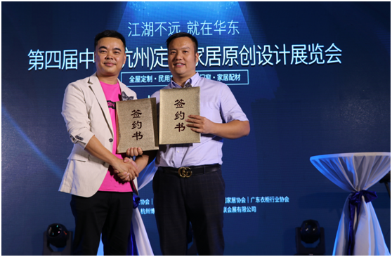 在9月26日以“江湖不远,就在华东”为主题的第四届中国(杭州)定制家居原创设计展览会新闻发布会上,与博骏传媒进行展位签约的品牌企业已经超过60家。随着展会的全面升级,陆续有企业也与博骏传媒达成了战略合作签约意向。在当晚的签约仪式上,机械猫作为第一家签约企业走上台来,与博骏传媒签订了合作协议,正式成为机械展区协办单位。