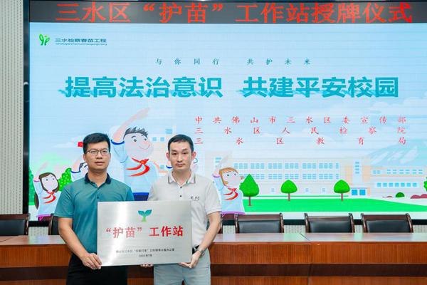 7月9日,三水中学附属中学举行了关爱未成年人成长的“护苗工作站”授牌仪式,三水首个“护苗工作站”正式成立。“护苗工作站”将整合多方优质资源,最大化发挥护苗工作合力,形成治理有方、引导有效的“护苗”工作新生态,营造全社会共同关心青少年健康成长的良好环境。