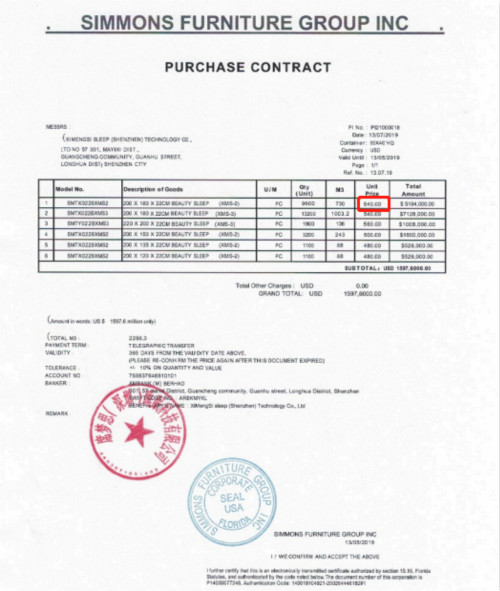 2020年4月21日,应美国国内企业Brooklyn Bedding、Corsicana Mattress Company、Elite Comfort Solutions, FXI, Inc.等于2020年3月31日提交的申请,对进口自中国的梦百合、慕思、席梦思、喜临门等床垫企业发起反补贴立案调查。美国打压中国企业进行出口反补贴加税97.78%,