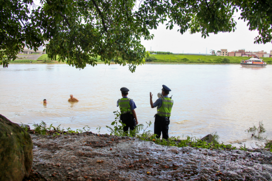 对此,首场暑期守护行动围绕防野泳开展。7月7日,禅城公安联合佛山市公安局水警部门在野泳多发地——东平河,出动水警巡逻艇、警用无人机和路面巡防力量,“海陆空”全方位劝导沿岸野泳市民。
