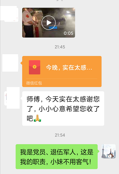 “我是党员,也是退伍军人,这是我的职责,不用客气!”一则简单的聊天对话背后,藏着一件暖心的好人好事。7月9日晚,佛山禅城江湾立交桥上一辆小轿车突然冒烟起火,刚好经过的佛山粤运公交121线车长李庆德见状立即下车扑救。