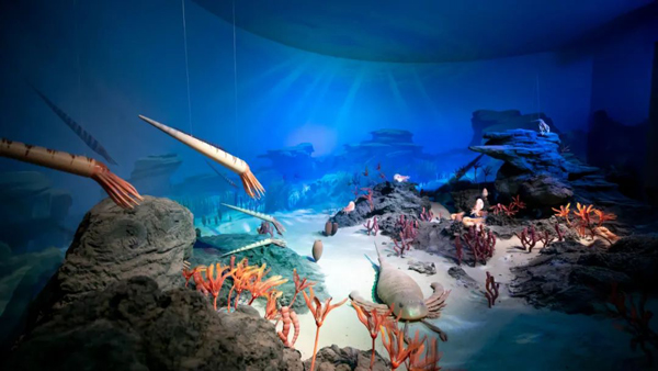 馆内现有各类自然标本3000多件,其中化石和岩矿宝石标本种类丰富。布展顾问郭建崴表示,整个展馆布置是“向世界一流展馆目标看齐”的,引入了众多国际上流行的展览方式,增强市民游客的互动式、沉浸式体验。同时,从故事线上也完整地介绍了从宇宙大爆炸到太阳系的形成、地球的形成、矿物成因等,包括生命的起源和生物进化的整个过程,为市民群众,尤其是青少年打造一个寓教于乐的场所。