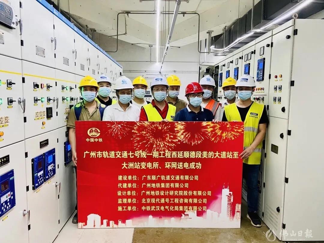 随着大洲站变电所合闸成功,广州地铁七号线西延顺德段,顺利实现“电通”目标。