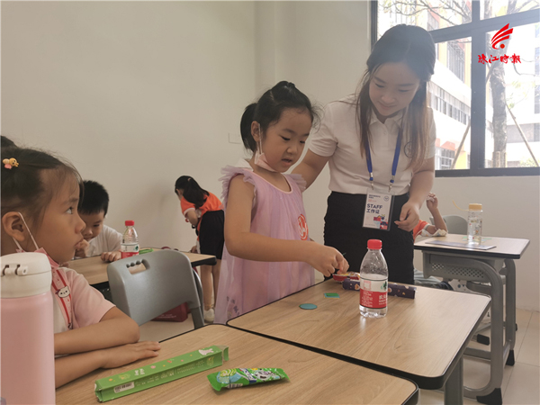 “听说小熊要开生日party啦!聪明的小朋友,你能帮助小熊一起整理房间吗?”开放日首日上午,数学老师洪思雨用生动活泼的语言和案例,带领一年级学生顺利进入《分类与整理》的数学世界,引得不少家长在课室外驻足品读好课。