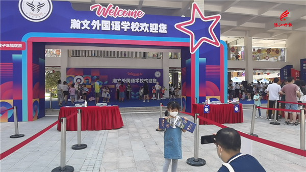 瀚文外国语学校开放日,家长带学生在拍照留念。