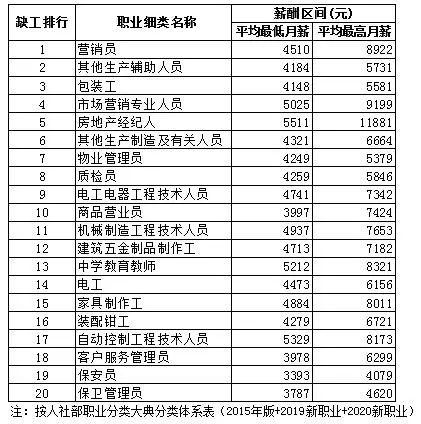 2021年第二季度佛山市公共人力资源市场短缺职业排行及薪酬情况出炉啦!