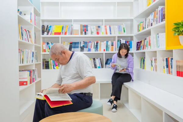养老服务中心图书馆内,社区的居民正在阅读书籍。/佛山日报记者王澍摄