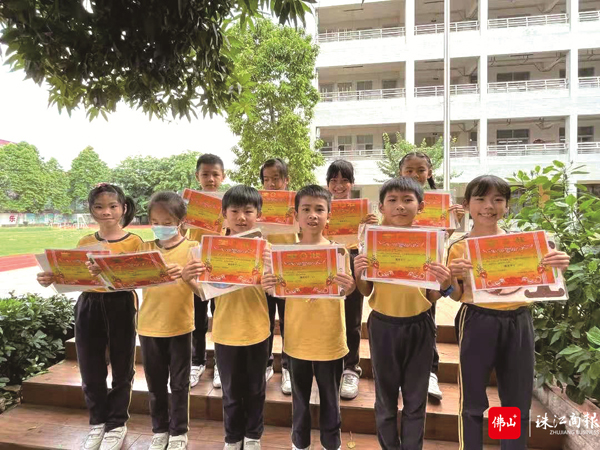 云路小学学生拿着奖状喜笑颜开。